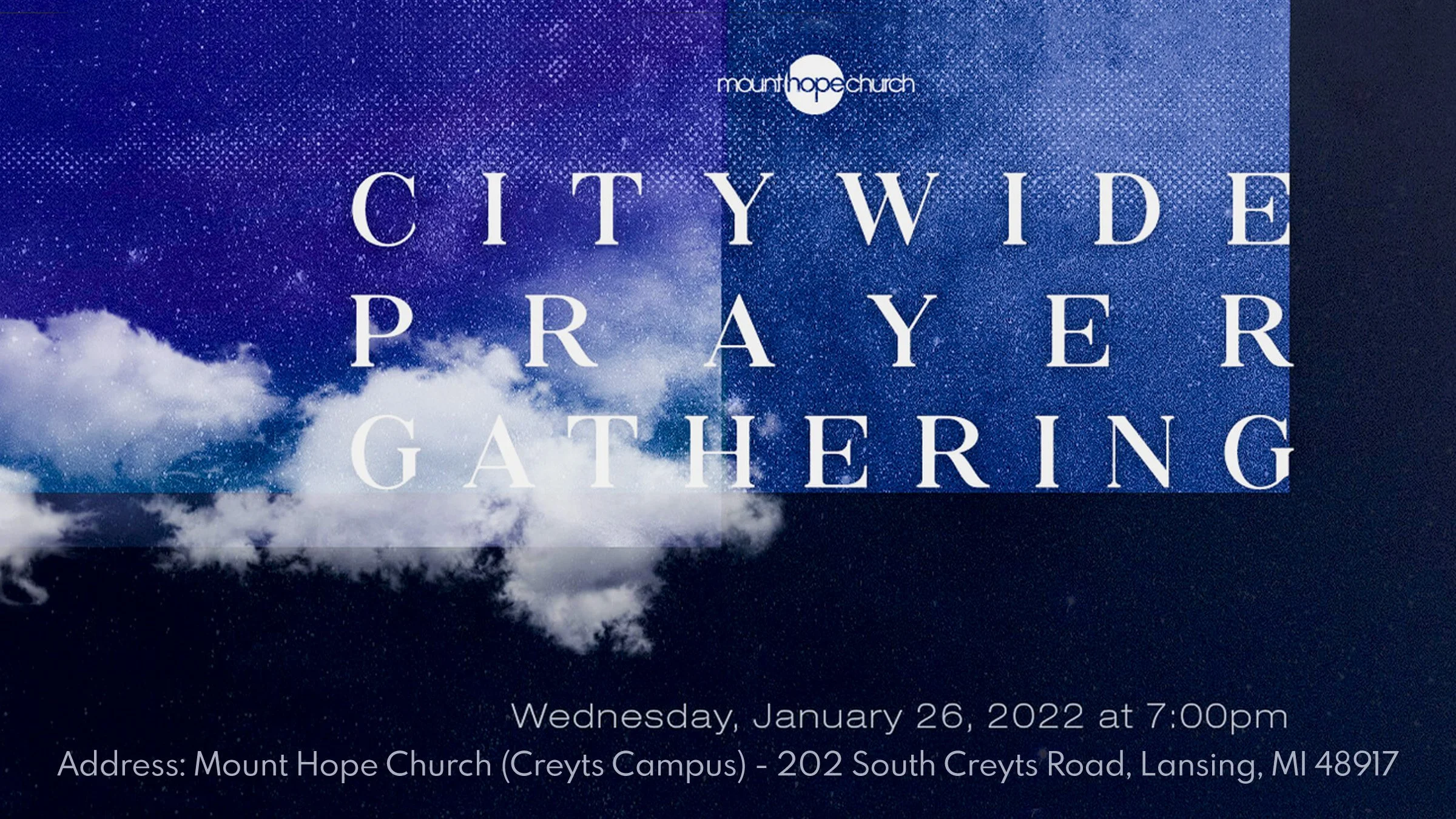 Details: Let’s start 2022 (and the kick off of our church-wide fast) by uniting in prayer with churches from around the city to celebrate on Wednesday, January 26. This gathering brings together local churches for the sole purpose of going hard after the heart of God and proclaiming life over 2022 in the greater Lansing area. Join us for worship, prayer, and a powerful night of encounter!