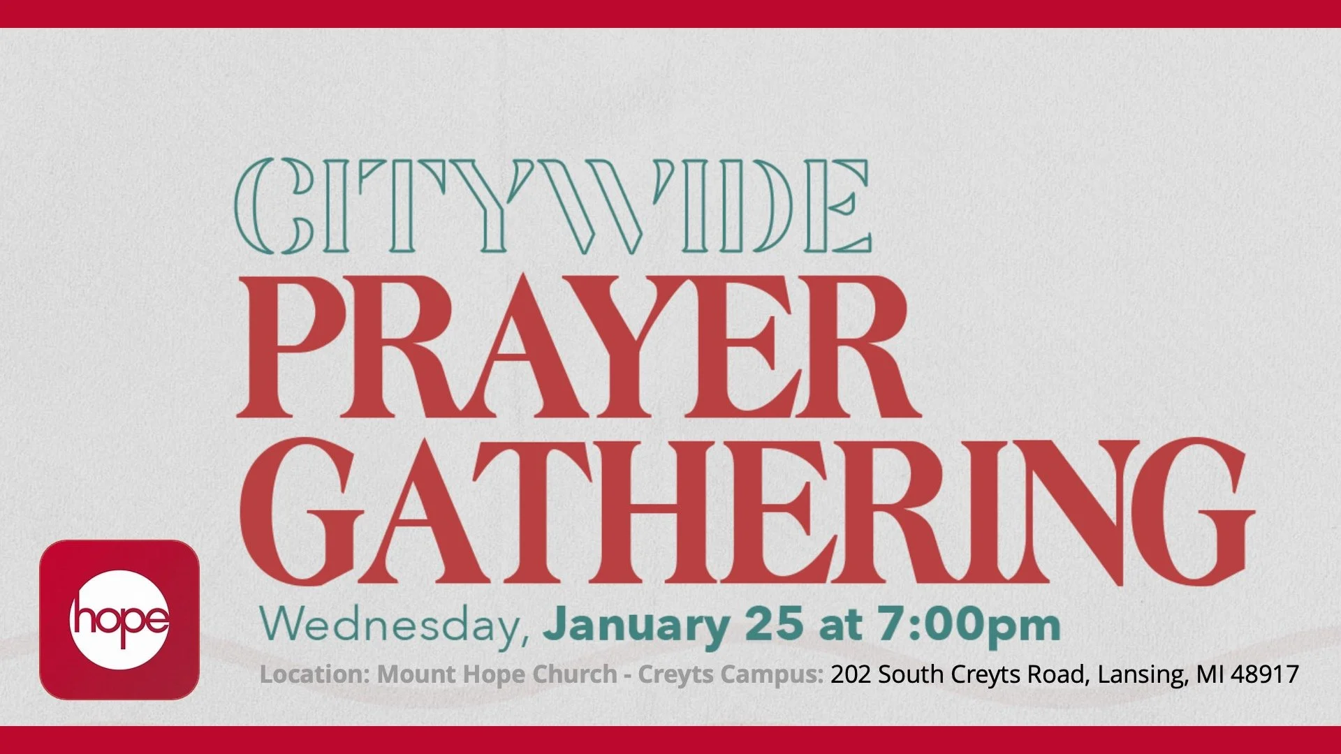 Details: Let’s start 2023 (and the kick off of our church-wide fast) by uniting in prayer with churches from around the city to celebrate on Wednesday, January 25. This gathering brings together local churches for the sole purpose of going hard after the heart of God and proclaiming life over 2023 in the greater Lansing area. Join us for worship, prayer, and a powerful night of encounter!