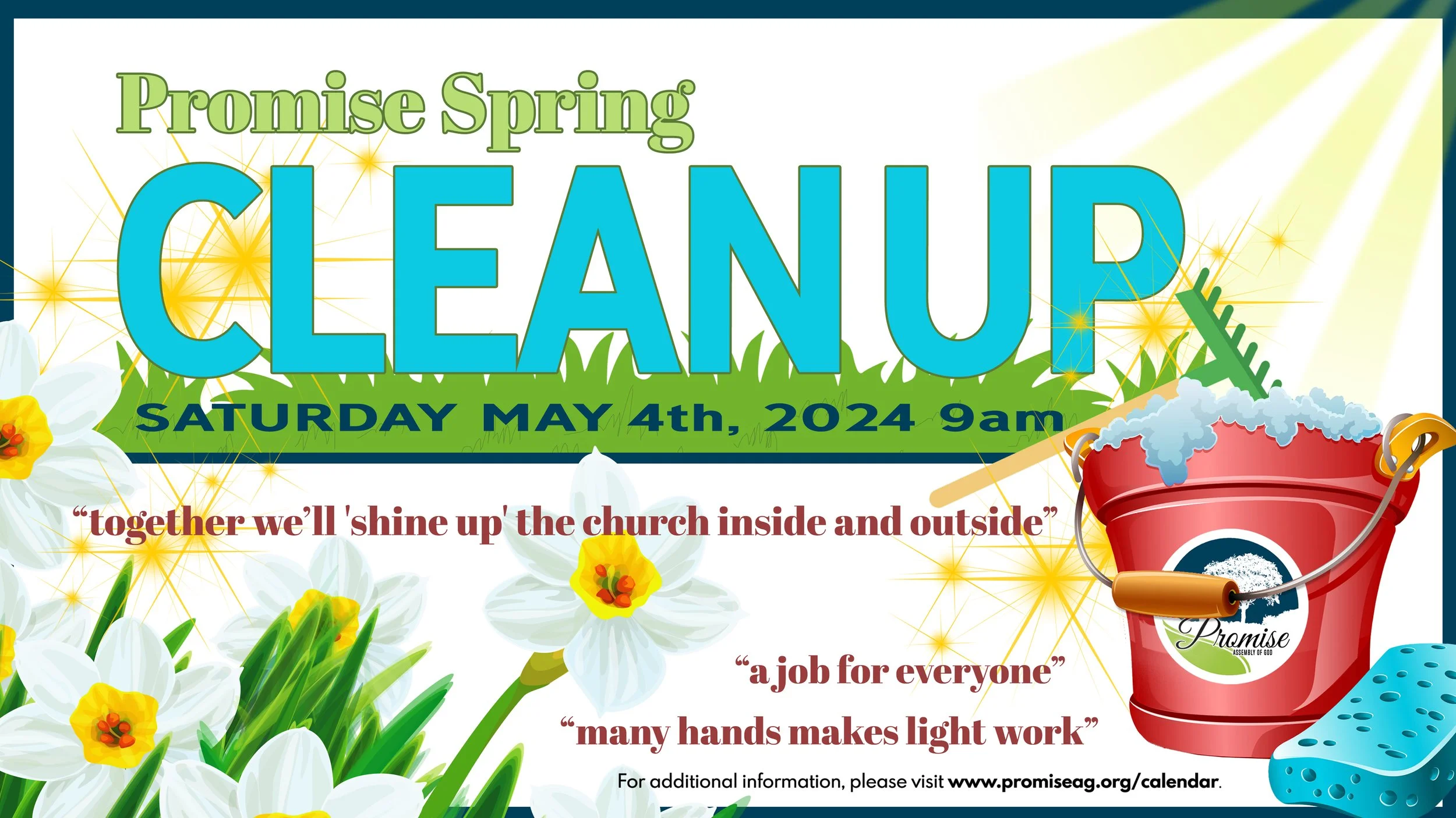 Description: The first annual church clean up day is Saturday, May 4th, 2024. This is a great time to come out in fellowship with others to 'shine up' the church and make it a more welcoming place for all. There are many jobs large and small, inside and out including helping organize snacks and drinks for the hungry crew. No experience necessary and all ages welcome! Bring yard and cleaning tools. Lunch will be provided for all volunteers.