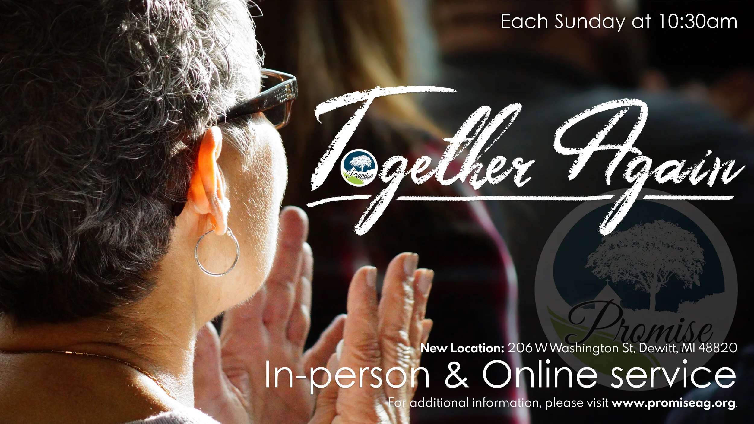 Promise Assembly Sunday Morning Service will be shared through In-Person and Facebook streaming. Please join us in-person at 206 W Washington St, Dewitt, MI 48820 or log in to Promise AG Facebook https://www.facebook.com/pg/PromiseAssemblyofGod/. Stream will begin at 10:15am. Worship will begin at 10:30am. Invite a friend and come prepared to worship together.