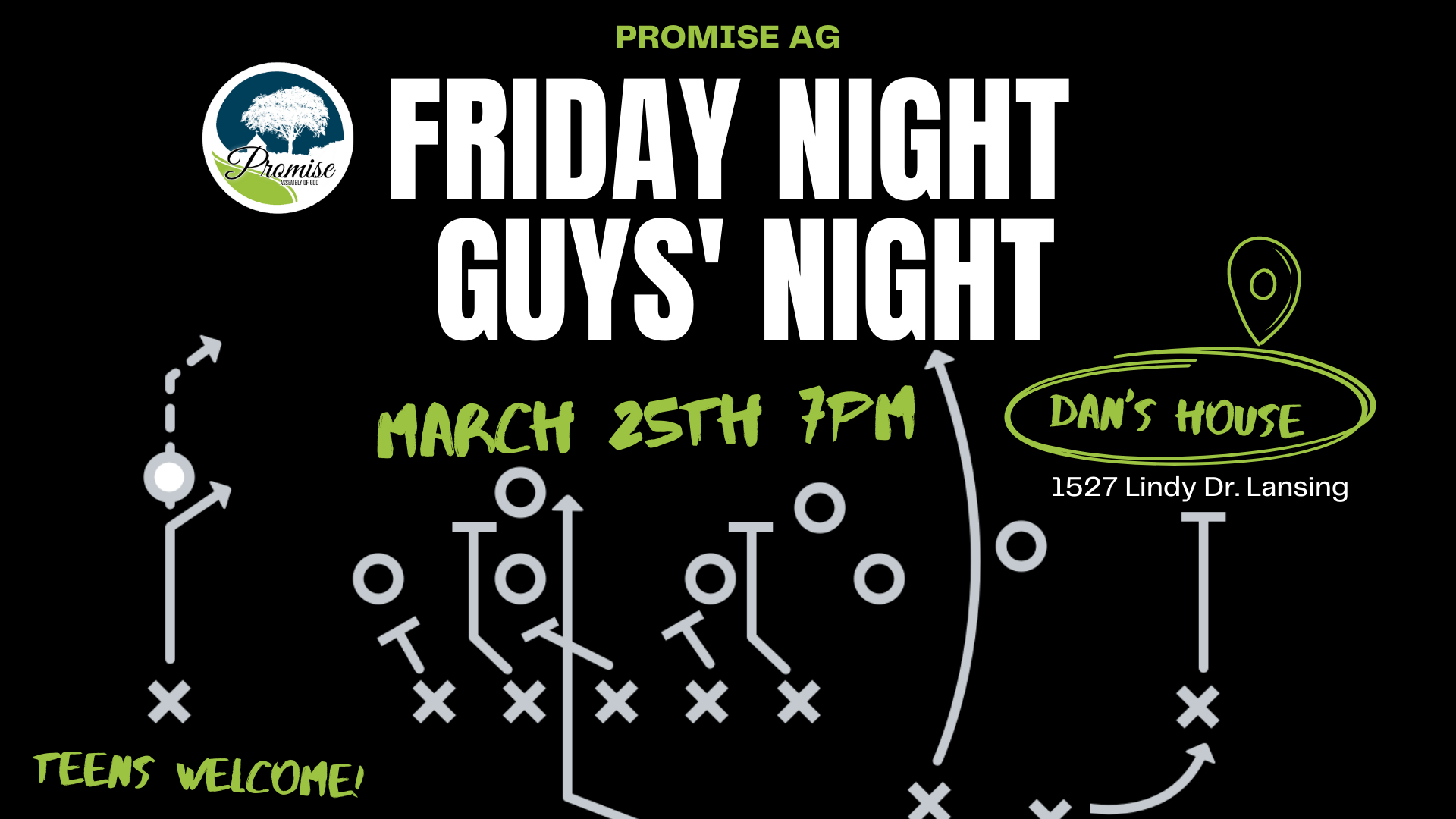 Guys (men and high school-aged guys) of Promise, you are invited to join the Promise Guys for a night of fellowship and fun. Join us on March 25, 2022 7pm at the Henderson Home. Feel free to bring a snack to share and invite a friend. Location: 1527 Lindy Dr Lansing, MI 48917